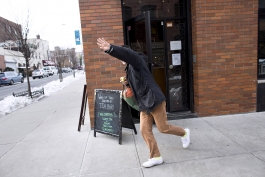 Christian Rudder, a cofounder of the dating website OKCupid, runs after a taxi near his home in Williamsburg.